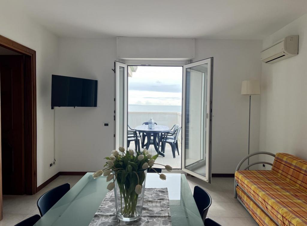 Type C5. Penthouse. Living-bedroom with kitchenette and double sofa bed, double bedroom, single bedroom, bathroom with enclosed shower, big balcony facing both the sea and the lagoon. Max 5 pax. 50 sqm