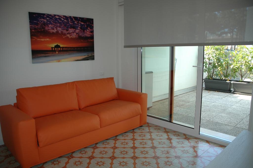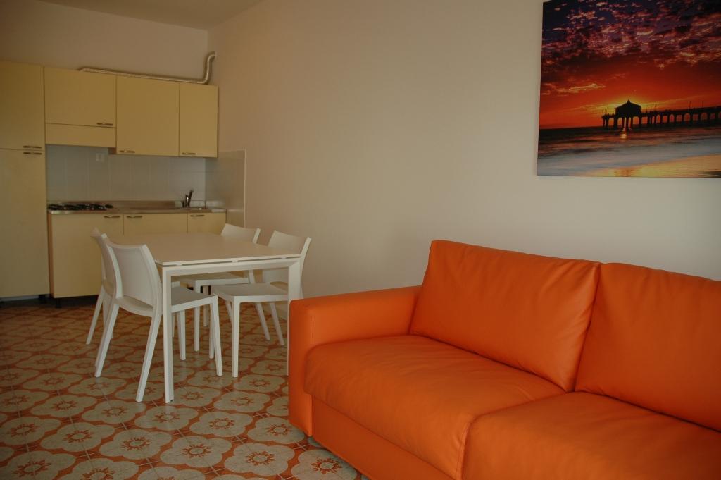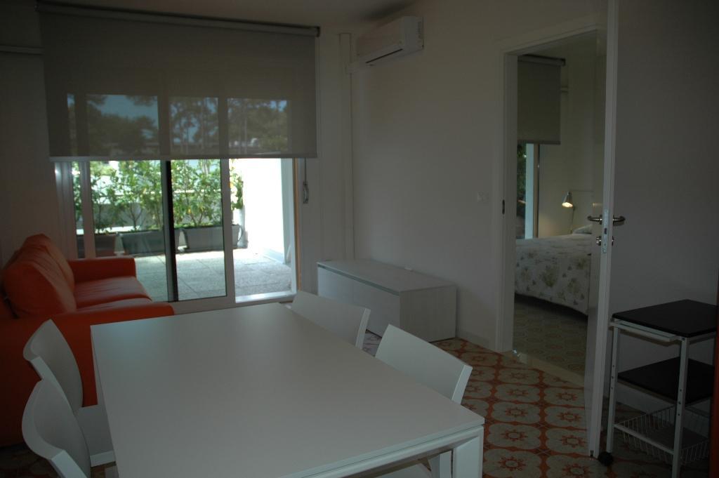 Type B1: renovated apartment with living-dining room with sofa bed and cooking corner, 1 bathrooms with shower and 2 WC, spacious bedroom with double bed and bunk bed divided by a sliding door, great corner terrace. For 4-5 people. Ideal for families with children - air conditioning unit.