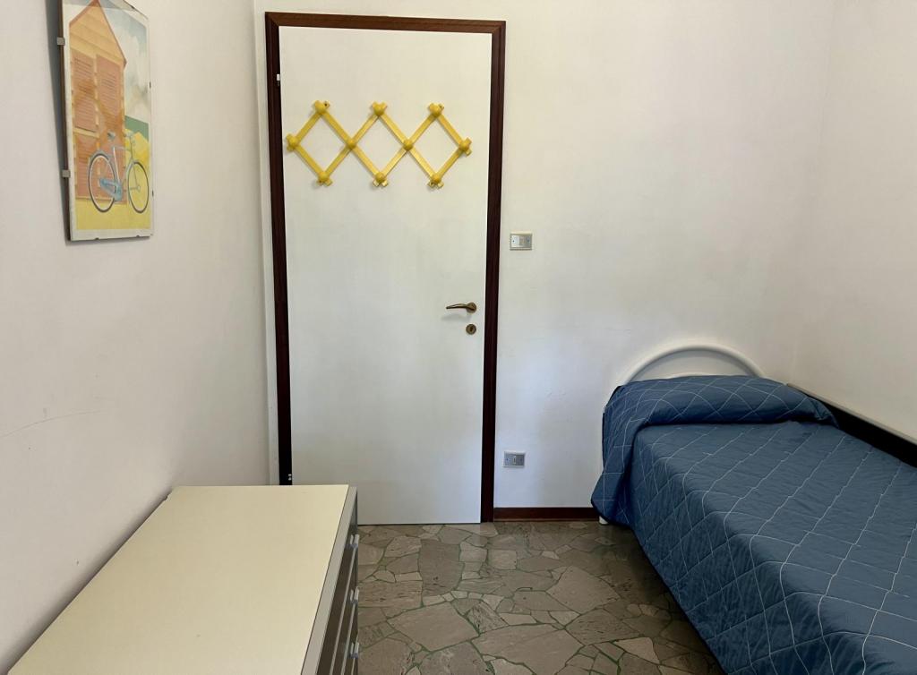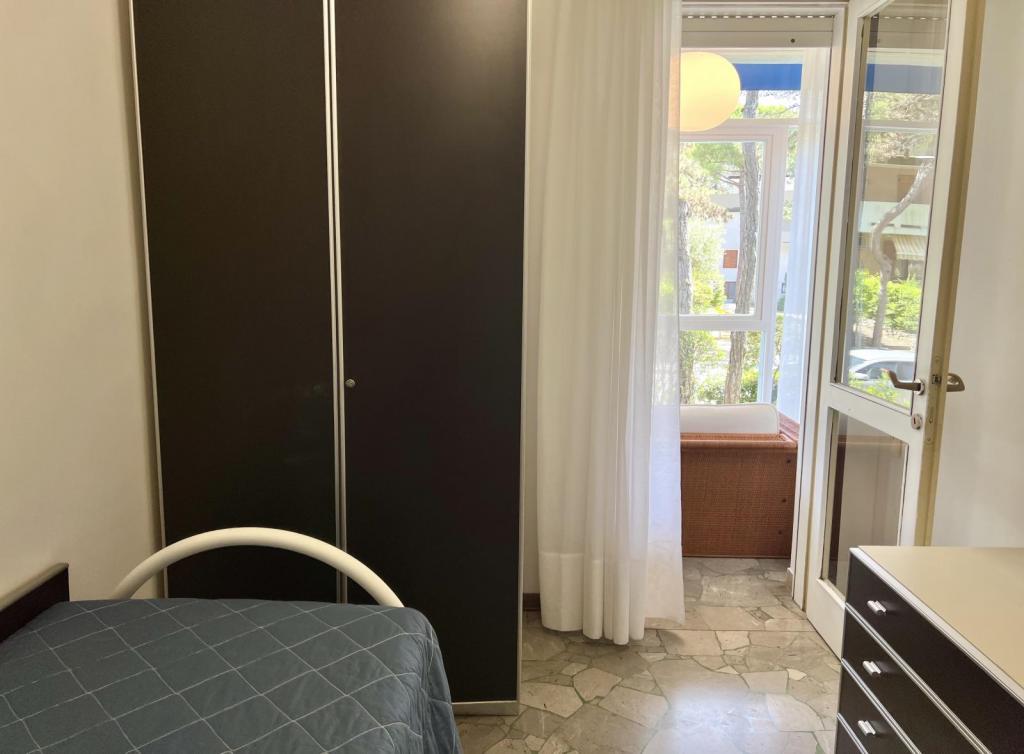 Type F. Located on the mezzanine. Living-bedroom with kitchenette and double sofa bed, double bedroom, single bedroom, bathroom with shower/wc, veranda with sofa. Max 5 pax.