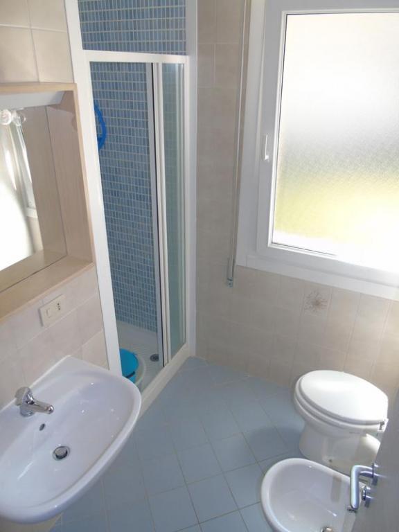 Apartment with two double bedrooms, livingroom with sofa bed, kitchen, bathroom with box shower, terrace, garden, parking, 1^ floor,