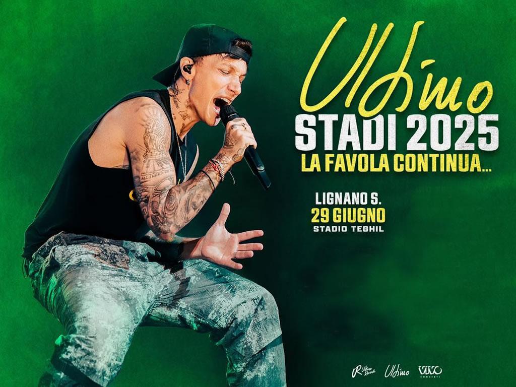 The Ultimo concert "Stadi 2025" La Favola Continua will take place in Lignano Sabbiadoro on Sunday 29 June 2025 at 9.00 pm, at the Comunale G. Teghil stadium.