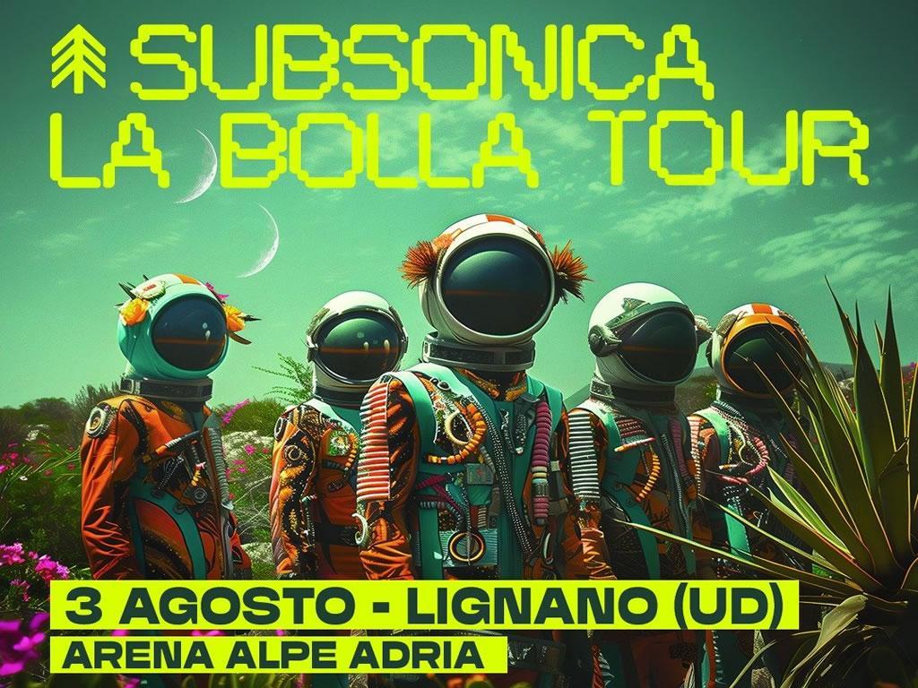 Subsonica will be the protagonists of the "LA BOLLA TOUR", a musical journey that will see them protagonists in the most fascinating arenas during the summer. Let yourself be carried away by the energy of “Augmented Reality”, the work that kicked off 2024. During the event, you will have the opportunity to listen to memorable hits again such as “Liberi tutti”, “Discolabirinto”, “Nuvole rapids”, “All my mistakes” and “The sky over Turin”.
